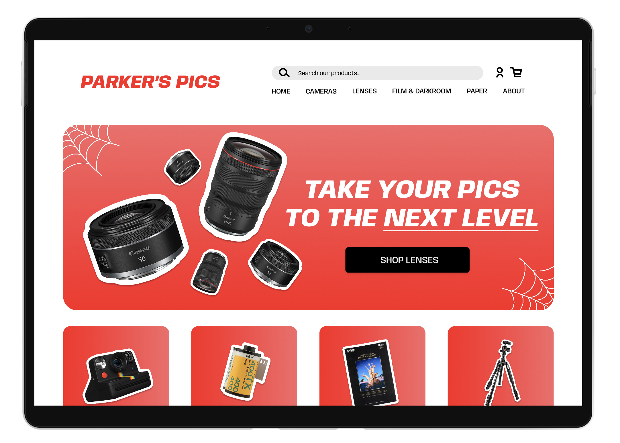 Parker’s Pics is Marvel’s Peter Parker/Spider-Man’s photography e-commerce website. It is targeted to the everyday hobbyists to seasoned professional photographers.